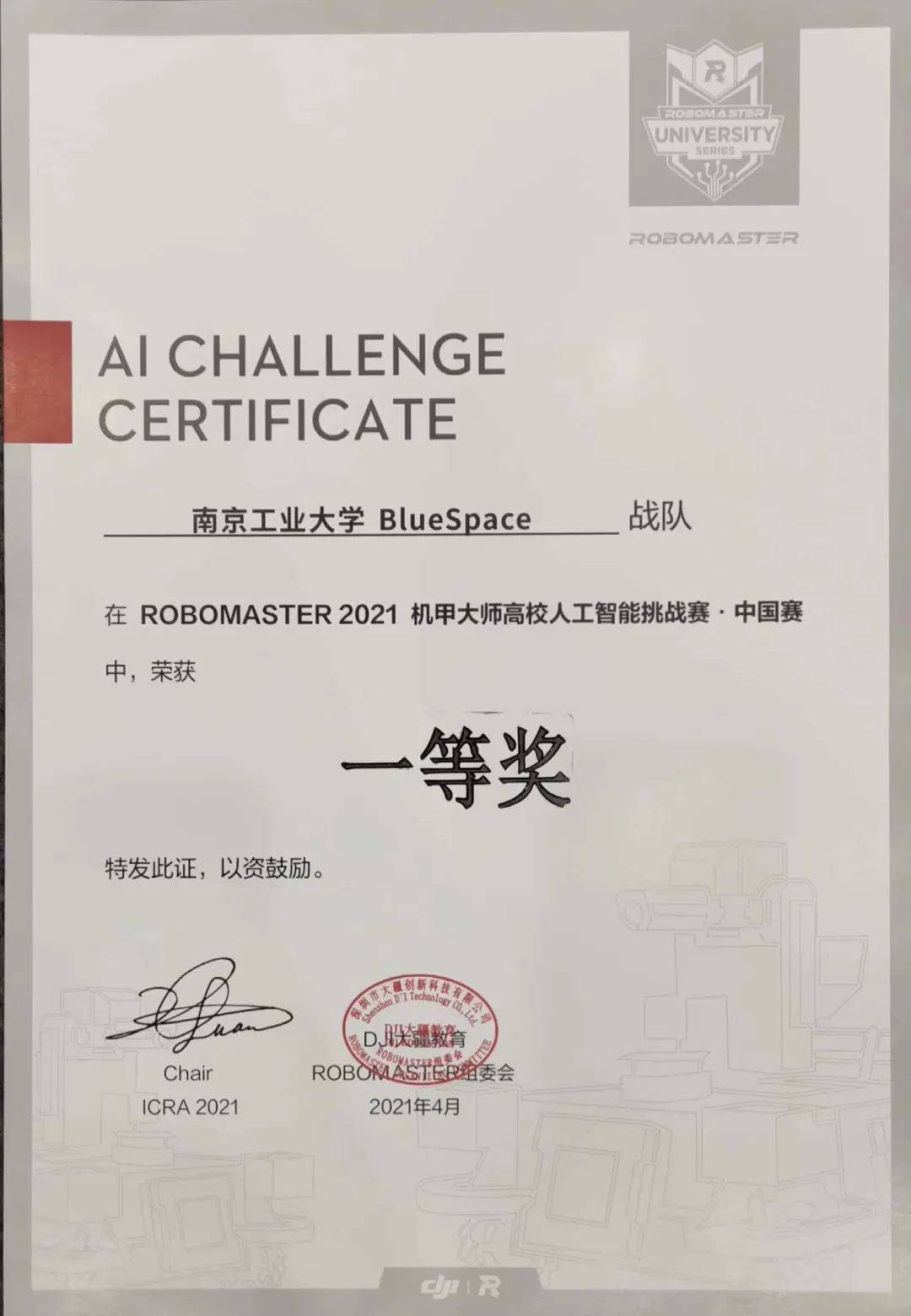南京工业大学斩获2021机甲大师高校人工智能挑战赛•中国赛一等奖!