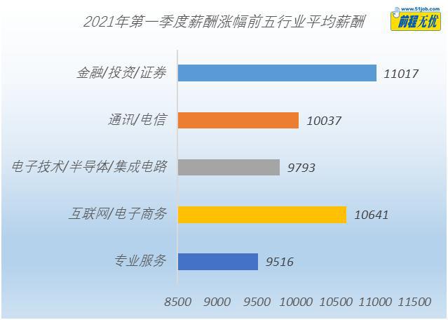分行业来看,2021年第一季度,薪酬涨幅前五行业依次为金融/投资/证券行业、通信/电信/网络设备行业、电子技术/半导体/集成电路行业、互联网/电子商务行业、专业服务业。其中,报告称,疫情常态化背景下,数字技术与经济社会进一步深度融合,使得高科技行业依然保持较为强劲的发展势头,在薪酬涨幅前五的行业中占有三席之地。(中新经纬APP)