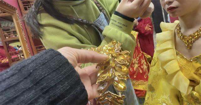 4月5日,记者以游客身份光顾了张先生所爆料的这家名叫“金銮殿”的照相馆。路过店门口,店员吆喝道“20元一位,化妆免费,没有其他任何额外费用。”可当记者进去换好衣服开始化妆时,店员便问到是否需要假睫毛、项链等四件套配饰,“你不带不好看,不然显得脖子和耳朵这里空闹闹的,四件套一共30元。”记者决定戴上一试,给了化妆师30元钱。