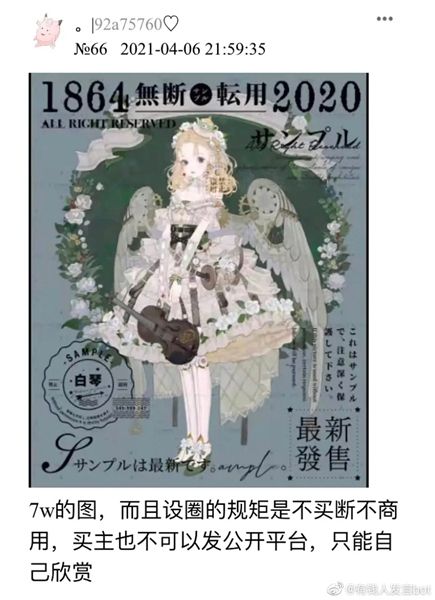 Q:不设圈规矩是不买断不商用,买主也不可以发布平台,也就是说7万买的图只能自己欣赏?