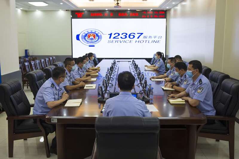 肇庆边检站民警在接听处理群众来电咨询