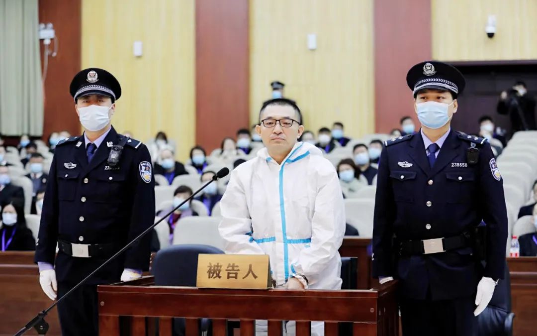 9时整,随着法槌落下,庭审开始。陈虹岩身着防护服,在两名法警的押解下走入被告席。他步履蹒跚、身形消瘦,不复当年意气风发之态。