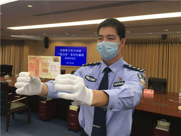 日前,在广东省公安厅刑侦局的指导和协调下,珠海和澳门两地警方联合开展抓捕行动,成功破获利用“练功券”实施跨境诈骗犯罪系列案,打掉了跨境诈骗团伙3个,抓获犯罪嫌疑人43名(其中澳门警方在澳门抓获涉案嫌疑人员22人),缴获“练功券”、银行卡、手机等作案工具一大批。