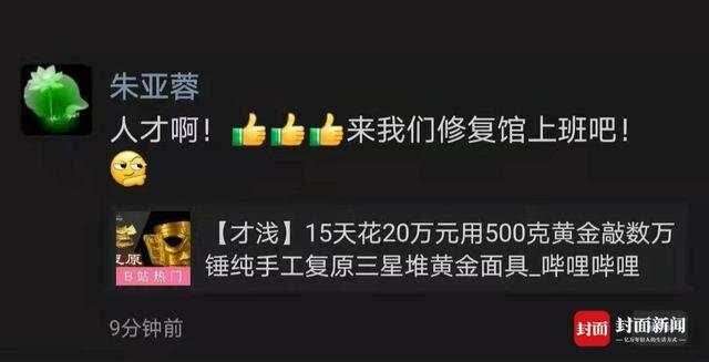 值得一提的是,这条视频还引起三星堆博物馆副馆长朱亚蓉的注意,她在朋友圈分享了这条视频,并喊话才浅,“来我们修复馆上班吧。”