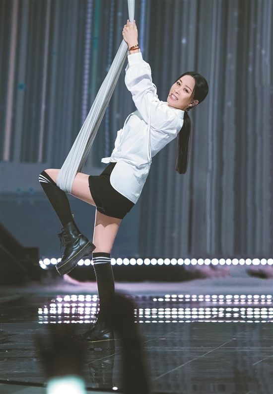 羊城晚报:初舞台时跳舞忘记动作,网友说你跳舞像在“作法”。后面的舞台则挑战了空中瑜伽,进步如此之大肯定非常不易,是什么支撑你扛下来的?