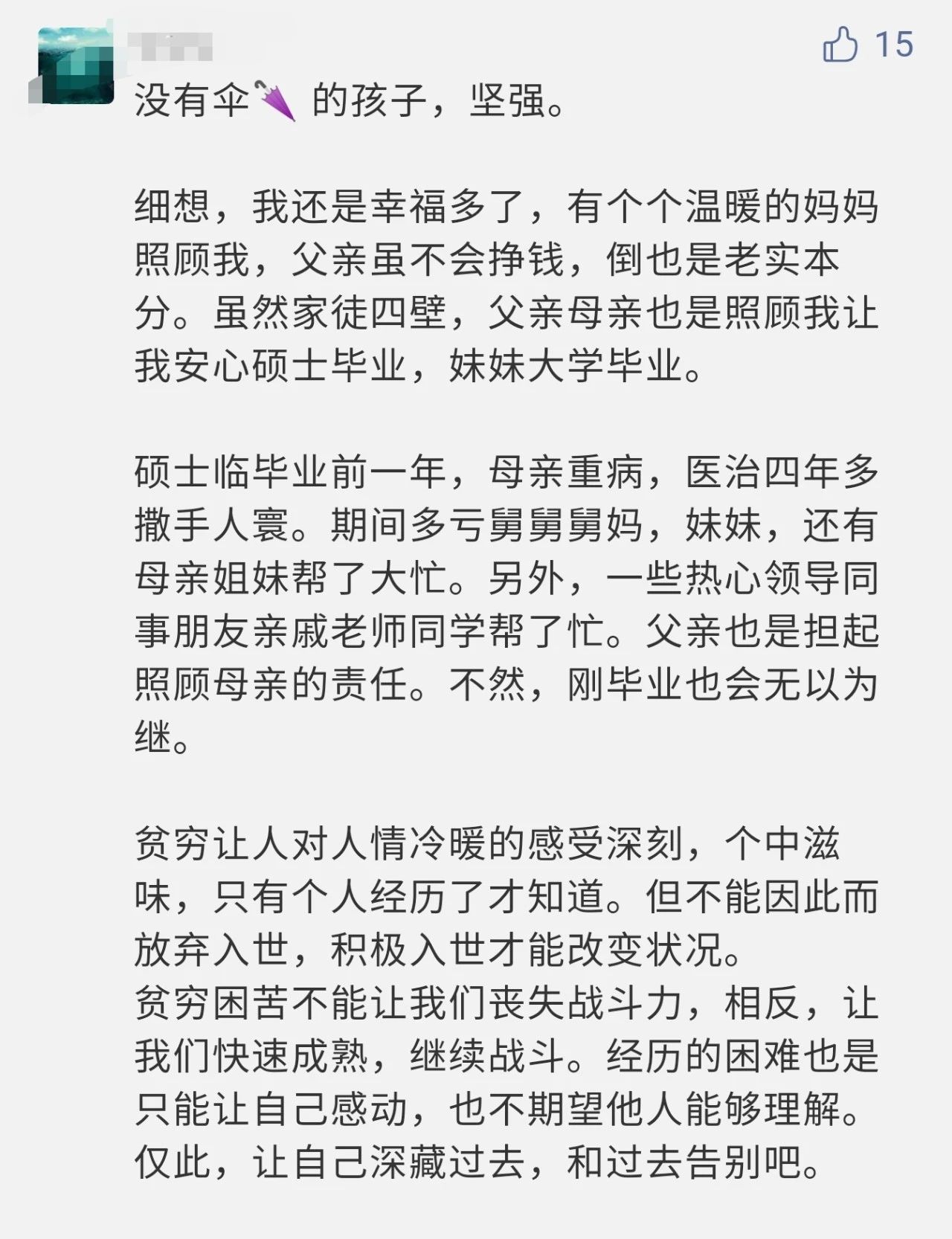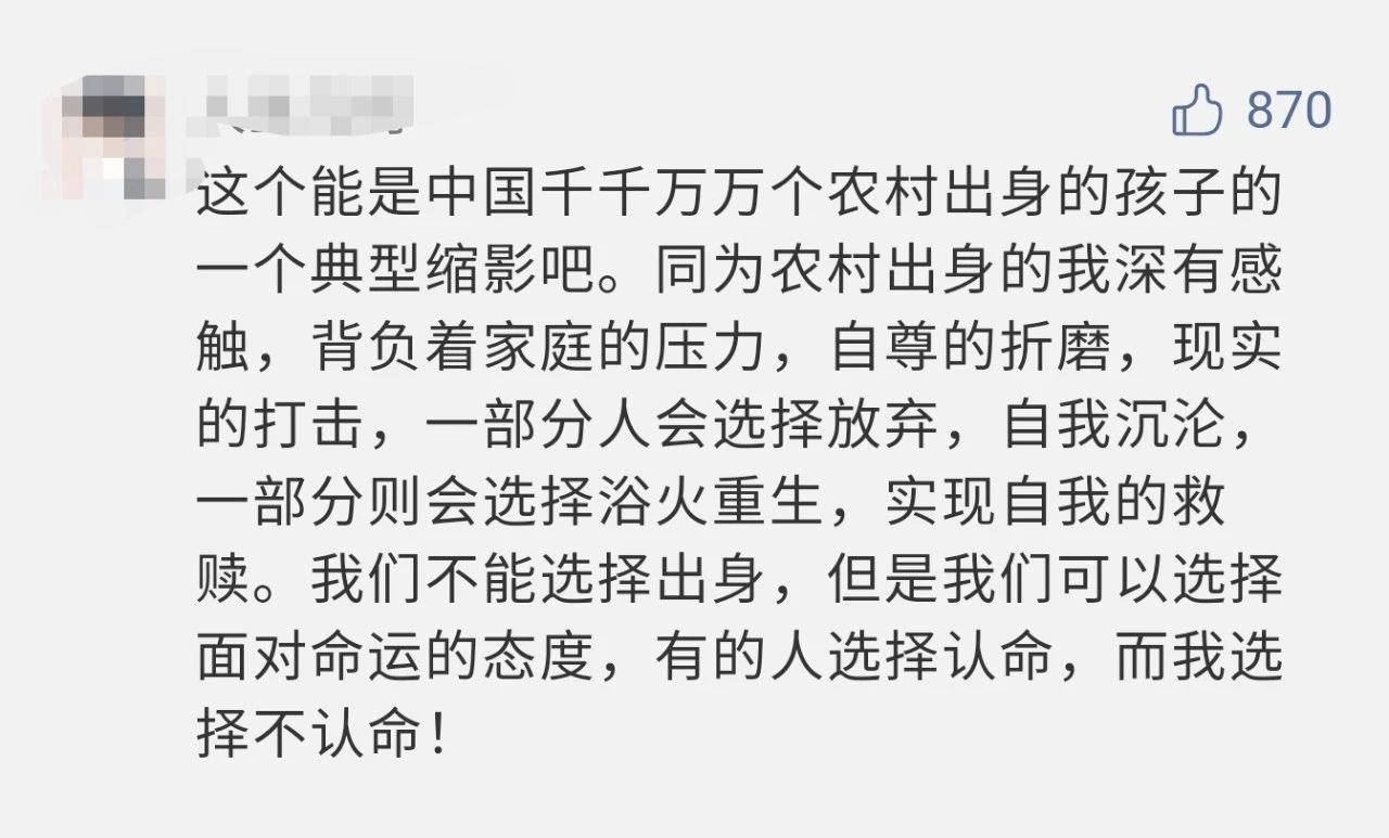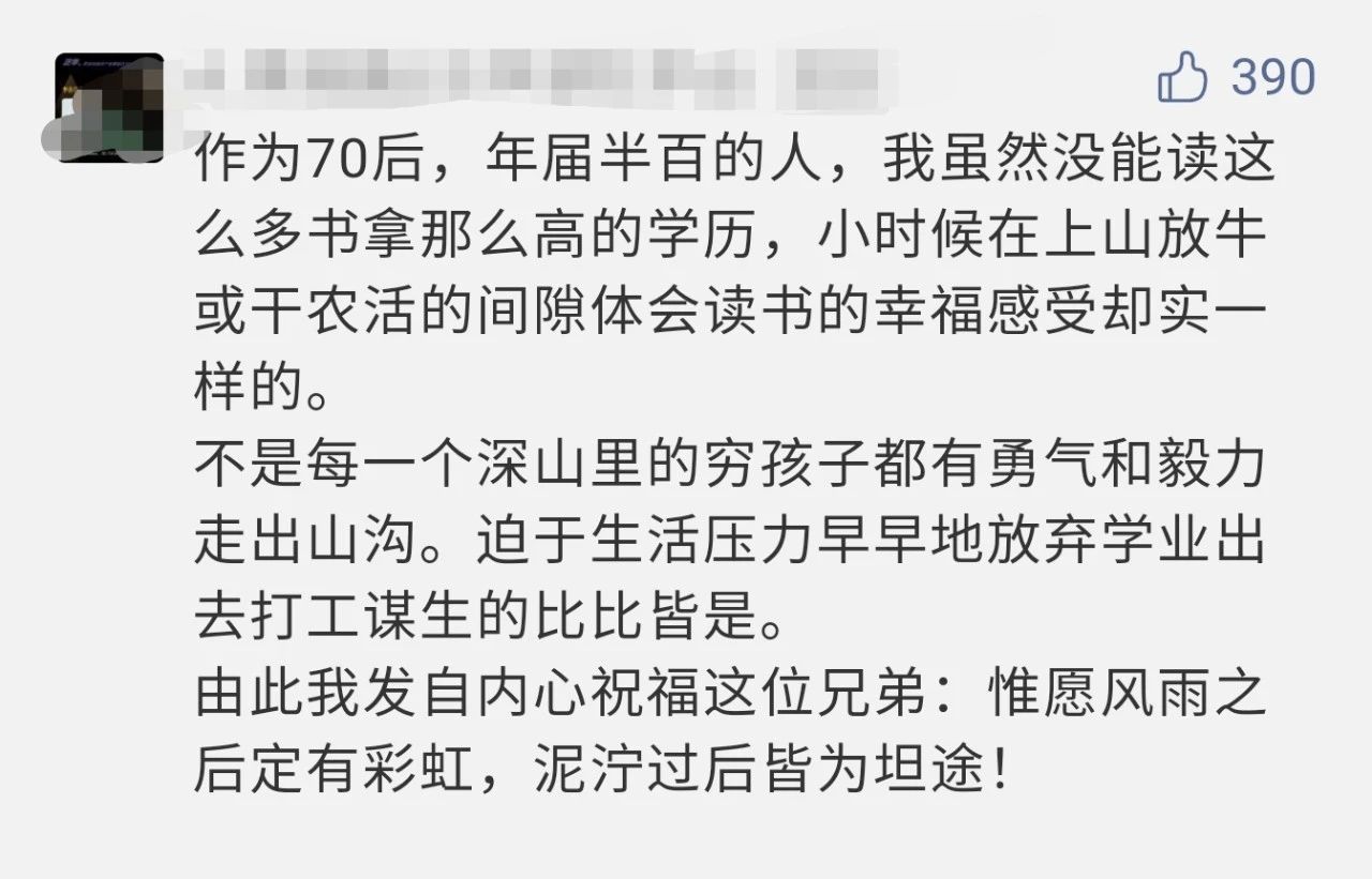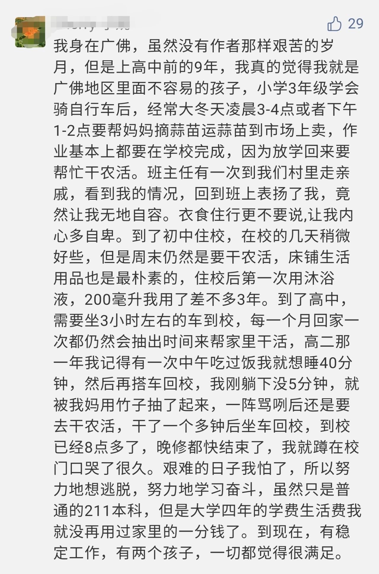 在中青报官微收到的数千条留言中,很多人表示“感同身受”,并写下了自己的经历,同样看哭。