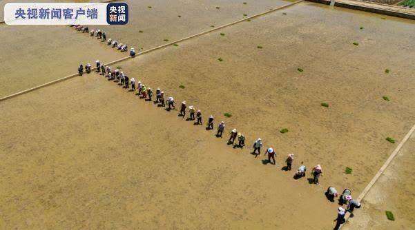 谷雨时节,水润万物。草坝镇前进村的袁隆平超级杂交水稻试验田里,115名当地村民正忙活着超级杂交水稻移栽工作,他们娴熟而默契地将秧盘从温室移出,送入试验田,再进行定距、分秧、插秧等一系列工作。