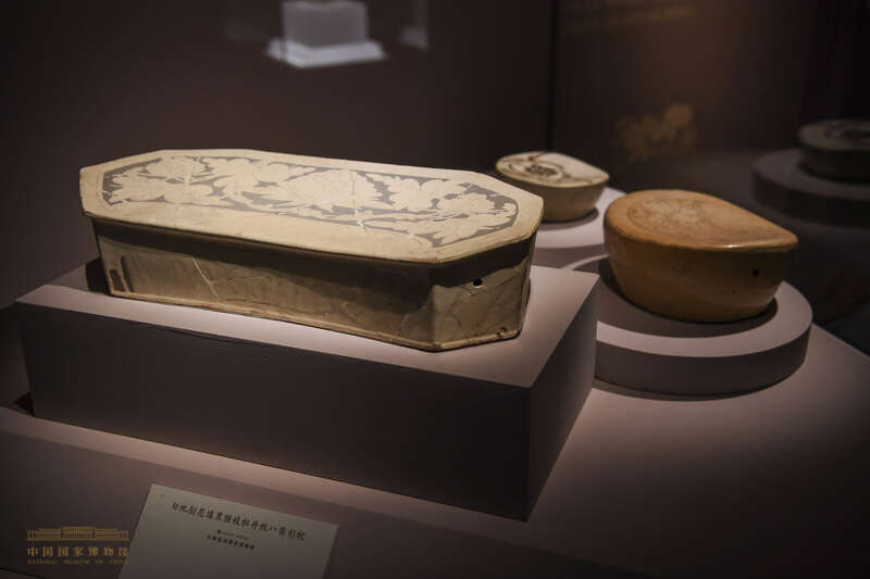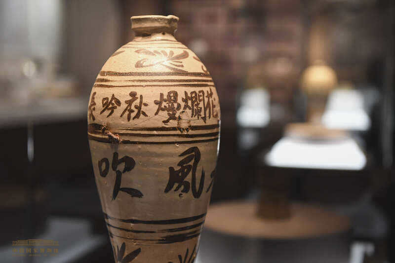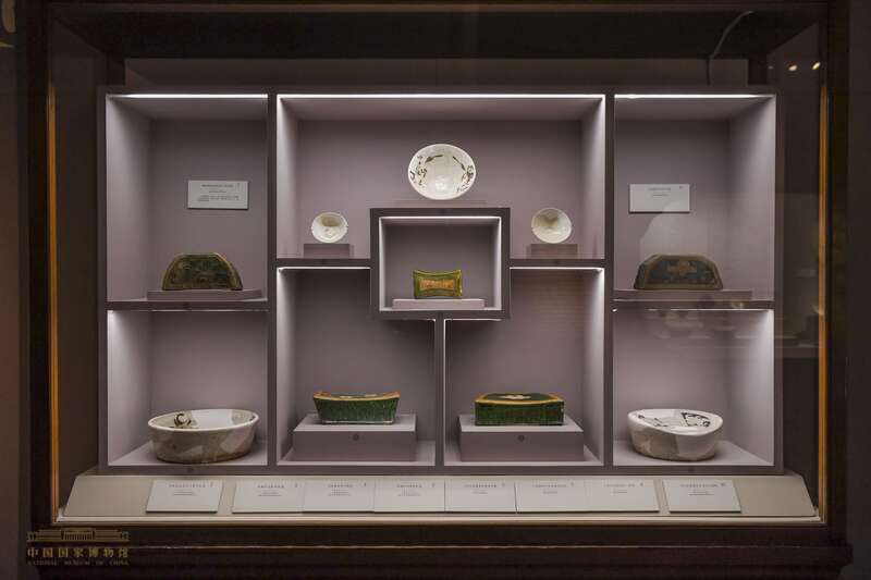 展品中最引人注目的是造型各异、装饰独特的瓷枕,特别是诗书题材装饰的瓷枕,书法考究、内容典雅,极具文人气韵,体现了这一时期精湛烧制工艺和高雅审美意趣的充分结合。