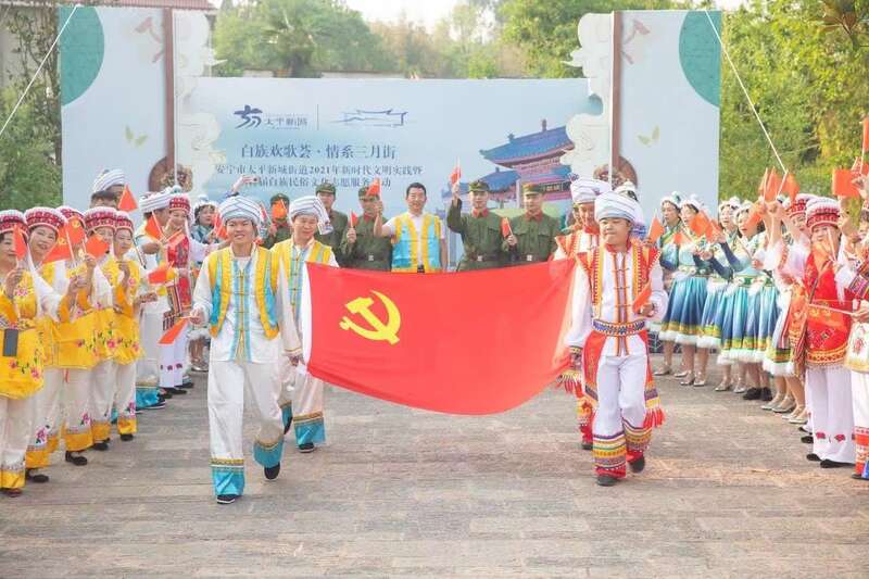 中国青年报客户端讯(中青报·中青网记者 张文凌)4月26日,昆明安宁市太平新城街道办事处举办2021年新时代文明实践暨首届“白族欢歌荟·情系三月街”白族民俗文化志愿服务活动,在昆明的部分白族同胞纷纷前往太平新城光崀大村,欢度这一有1300余年历史的传统节日。
