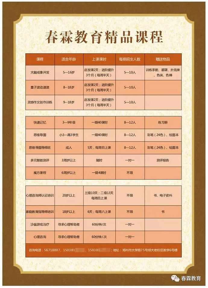 “您的孩子还在延续记了又忘,忘了又记的痛苦吗?……通过右脑潜智能训练,打开孩子大脑的潜能宝库。”2016年5月,“春霖教育”发文称,“最强大脑”强势登陆,该校将开展学能训练班,要求孩子年龄在5-15岁之间。