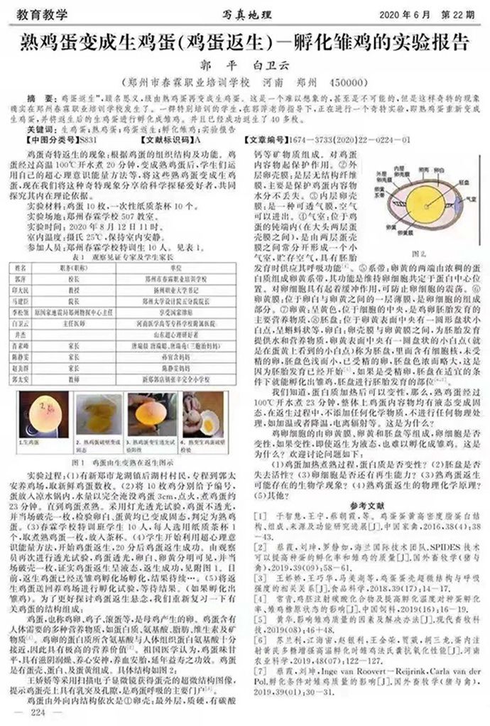 郑州市春霖职业培训学校校长郭萍(本名郭花平)在《写真地理》杂志上发表文章《熟鸡蛋变成生鸡蛋——孵化雏鸡的实验报告》(简称“熟蛋返生”文),称通过“特异学生”的“意念和能量传播”,能使熟鸡蛋返生,然后正常孵出小鸡。