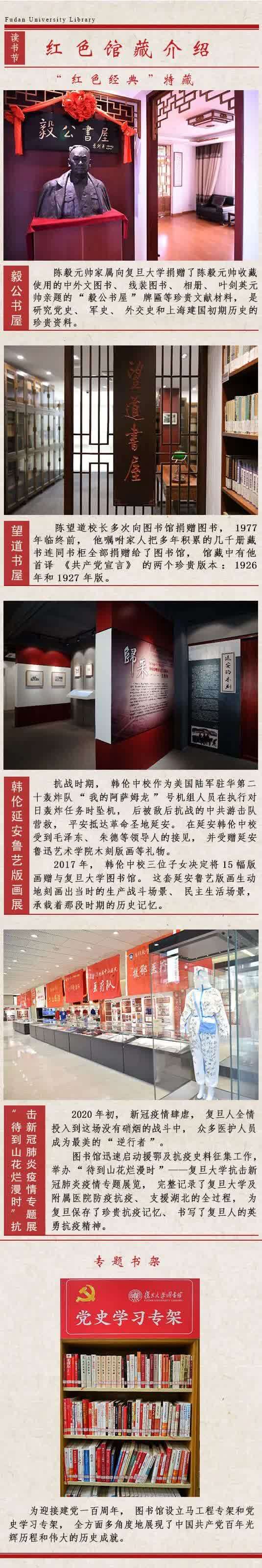 据介绍,复旦大学图书馆聚焦革命文化,充分挖掘复旦历史上的红色基因,开启红色经典收藏服务计划。目前,特色收藏包括陈毅元帅藏书、复旦老校长陈望道望老藏书、延安版画,和新时期抗疫特藏等。