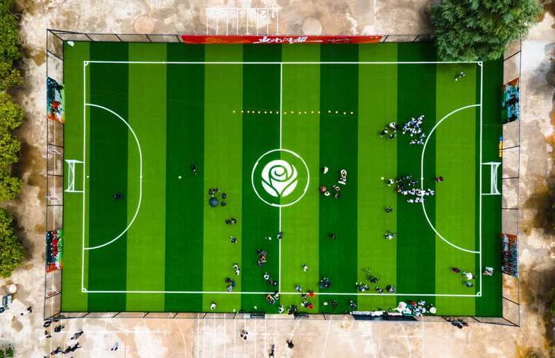 28日是球场落成日,老女足队员孙雯、刘爱玲、王丽平专程从北京飞往云南,驱车来到石林彝族自治县长湖镇维则青联希望小学,为这座“玫瑰梦想球场”启幕。