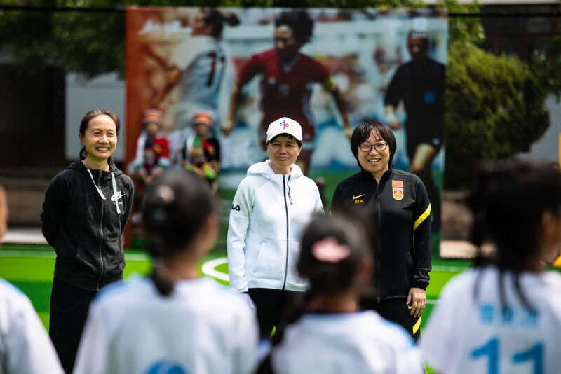 启动仪式后,孙雯、刘爱玲、王丽平还跟孩子们玩起了足球游戏,给孩子们演示了过人、传球、射门等“绝技”。