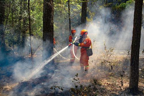 在跟随森林消防和地方扑火队奋战多日,扑灭山火后,我们又赶到疑似起火点附近的柳树桩。村子旁边的一处山坡,也是19名扑火人员牺牲的地方。
