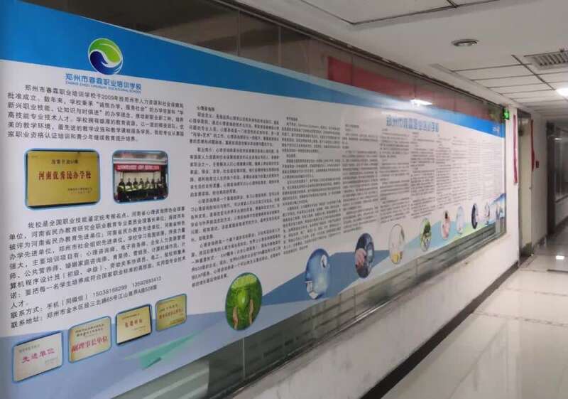 目前,“春霖”已人去楼空,所有的门都上着锁。但走廊的墙壁上,还粘贴着“郑州市社会组织先进单位”等荣誉信息。28日晚,郑州市有关部门告诉记者,春霖职业培训学校已停业整顿,郭萍主动提出辞职。