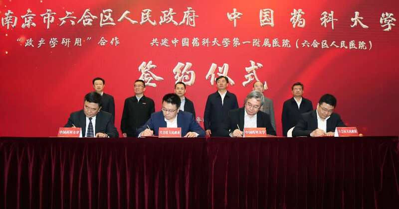 中国药科大学副校长于广琮和六合区副区长徐仁平代表双方签订了共建附属医院框架协议。根据协议,南京市六合区人民政府将六合区人民医院交由中国药科大学运营管理,成为中国药科大学附属医院,定名为“中国药科大学第一附属医院、南京市六合区人民医院”。
