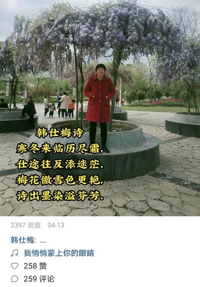 韩仕梅从去年4月开始在短视频平台上发表诗歌,用的手机是儿子淘汰下来的,她以前用的是价值500元的手机,内存很小,录不了视频。到现在,她已经在网上发布了157个视频。