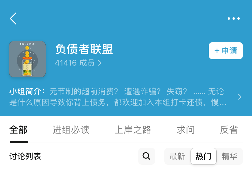 豆瓣小组“负债者联盟”。(图片来源:豆瓣网)