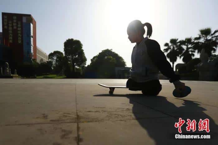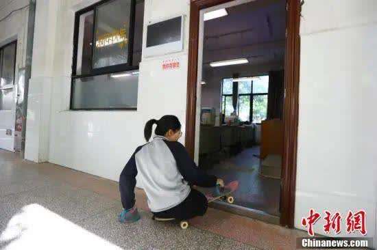 如今已是高中生的蒋张子怡在校园里以滑板代步。中新社记者 刘占昆 摄