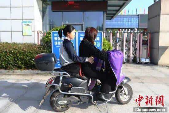 图为蒋张子怡的母亲每天骑着电动车接送她上学。中新社记者 刘占昆 摄