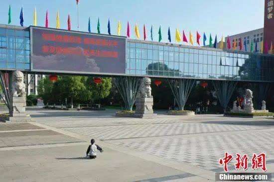 图为母亲张水香牵着坐着滑板的蒋张子怡去教室。中新社记者 刘占昆 摄