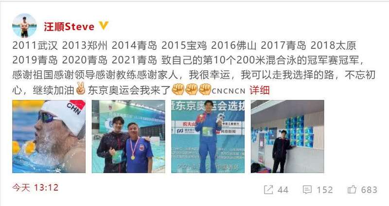 成绩一直保持稳定,但想要在东京奥运会上有所收获,汪顺认为自己需要突破。“去年一年没有比赛,今年比赛密度又比较大,我的身体还处于适应过程当中。我会在奥运会前最后几个月把身体状态调整到最好。”汪顺说。