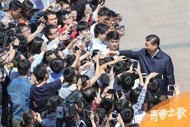 2018年5月2日,习近平总书记来到北京大学考察。这是总书记离开学校时同道路两旁师生亲切握手。