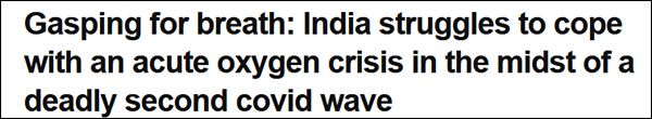 “印度在致命的第二波疫情高潮中挣扎应对氧气危机”,《今日印度》报道截图