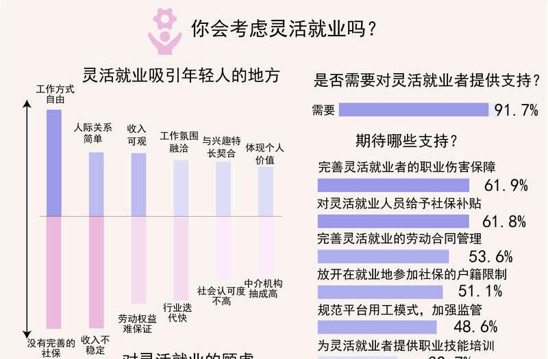 随着互联网和共享经济的发展,灵活就业吸引了更多的年轻人。中国青年报社社会调查中心调查显示,72.8%的受访青年觉得身边灵活就业的年轻人多。工作方式自由是灵活就业对年轻人最大的吸引力。更多数据发现,请看本期《快看数据》。