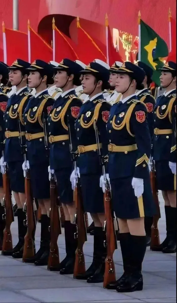 她们看到电视里英姿飒爽的仪仗女兵