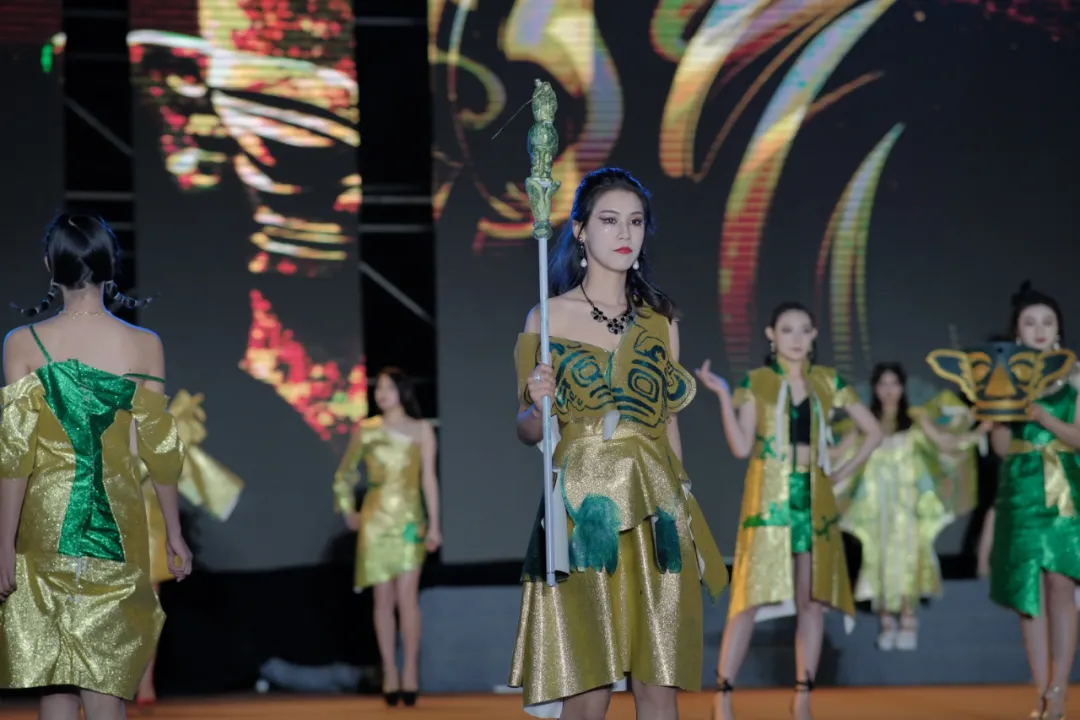 “今年三星堆的考古新发现再次震惊了世人,我们通过创新将其与时尚潮服结合起来,让大家看到传统文化的美。”参与走秀的空中乘务专业的邵猛说道。在现场,他头戴三星堆造型的头盔,身穿金色与青铜锈迹色彩的服饰,宛如三星堆文物现身舞台。