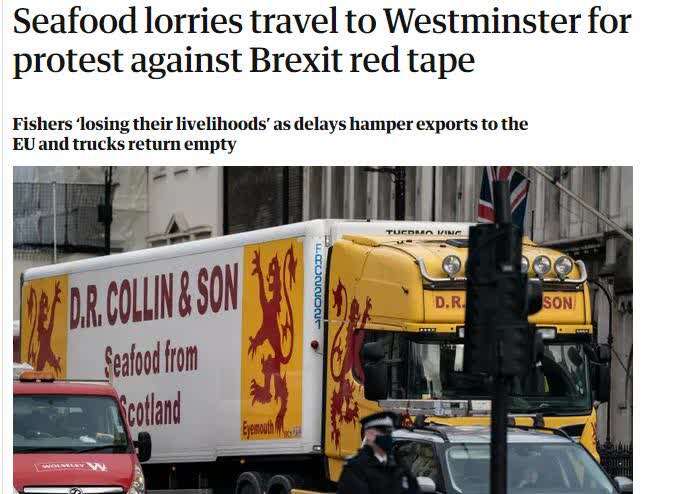 的确,英欧已经就捕鱼问题达成了共识,同意设立5年半过渡期并将欧盟在英国水域捕鱼配额逐渐削减25%。如今看来,这一争议恐怕只是纸面上谈拢了。实际上,英欧双方一直在利用各种行政手段来“阻挠”对方,欧盟率先要求英国渔民提供繁琐的文书材料,才能向欧盟出口海鲜,英国此番限制捕鱼也有点儿针尖对麦芒。