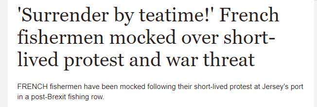 与官方表态不同,民间对这场冲突“意犹未尽”。有报道称,法国渔民在撤离过程中发出了“战斗的号召”,一位法国船员警告“下一次将是战争”。而英国《太阳报》甚至将法国渔船的撤离称为“投降”。