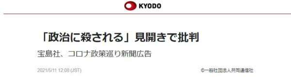 日本共同社:“被政府杀死”,整版广告批判,宝岛社,关于新冠病毒的新闻广告
