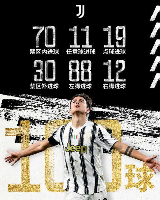 下半场萨索洛扳回一球,但迪巴拉很快再度将比分优势扩大,最终尤文3:1取胜。这也是迪巴拉尤文生涯的第100粒进球,他成为首位为斑马军团打进百球的非欧洲球员(转换国籍球员除外)。