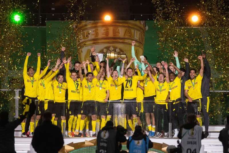 继上一次在2016-2017赛季摘取德国杯桂冠后,多特蒙德本赛季在队史上第5次捧起德国杯。