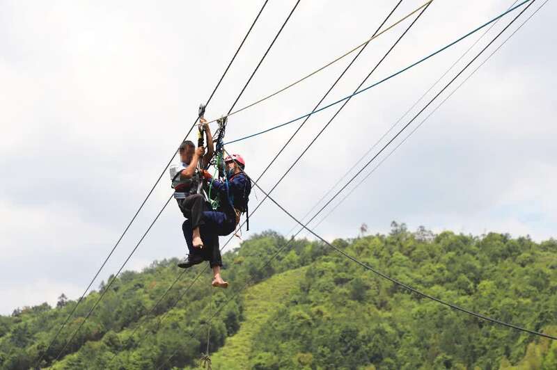 据现场知情人员介绍,该男子系讨薪无果,在乘坐观光滑索时爬上索道钢缆欲轻生。经劝说,该男子放弃轻生念头,但因身体坐久麻痹,无法自行返回。