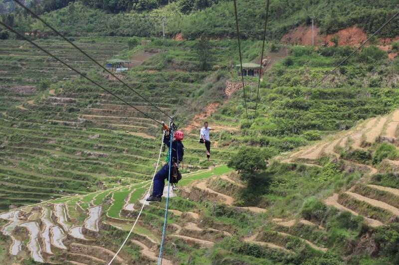 中国青年报客户端讯( 黄阿兰 中青报·中青网记者陈强)5月14日,在福建省德化县李溪村虎贲岩景区,一男子悬坐在高空索道上欲寻短见,所幸被当地消防救援人员及时救下。