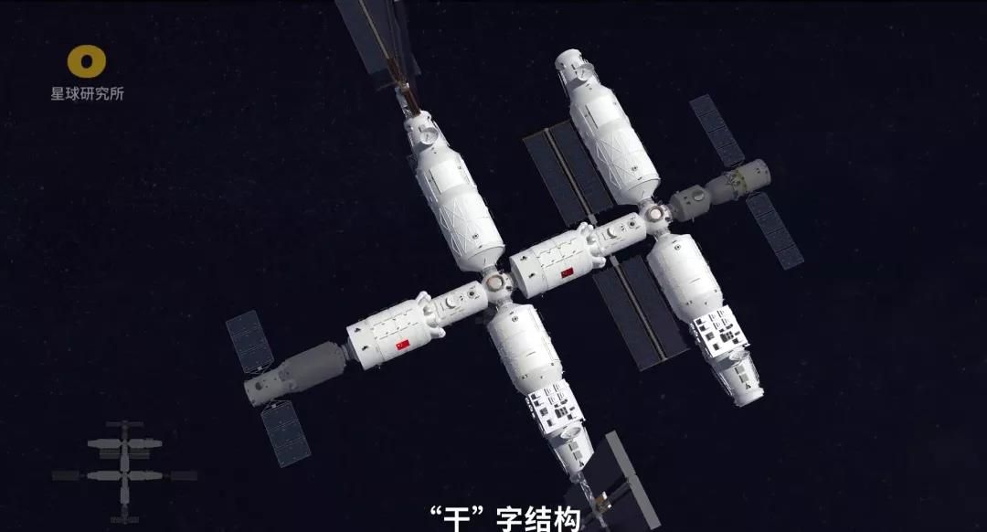 空间站通过增加1个核心舱、2个实验舱,最终扩展为一个庞大的“干” 字结构。