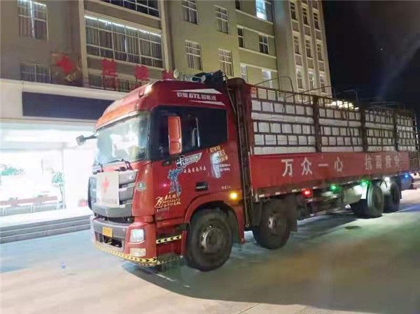 5月22日3:00楚雄州红会备灾仓库发出救灾货车,装载着720个赈济家庭包赶赴灾区。