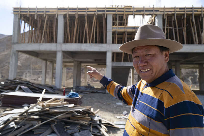 次仁格旦的父亲在新盖的旅馆前监工。新华社记者普布扎西摄