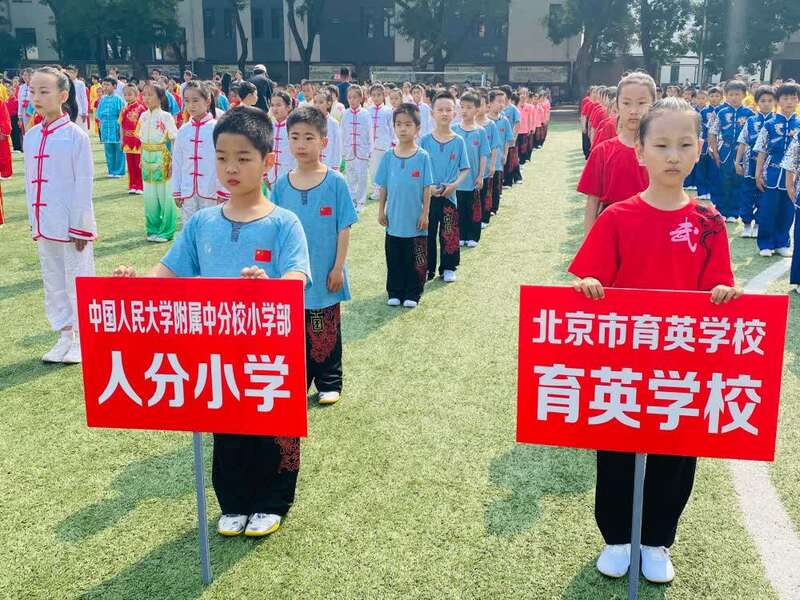 在北京市中小学民族传统体育节启动仪式上,来自八一学校、双榆树一小等8所学校的1000多名中小学生进行了武术、舞龙舞狮、跳绳、空竹等民族传统体育展示。