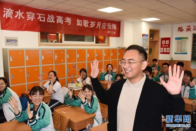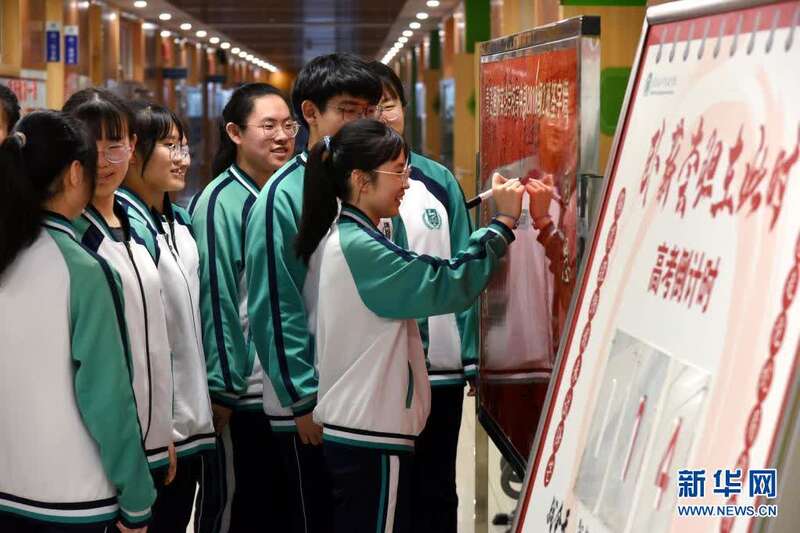 5月23日,青岛通济实验学校高三学生在签名板上留言相互鼓励。