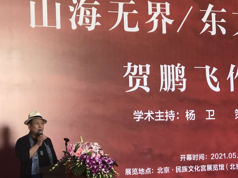 今天的贺鹏飞有了一个被很多业内画家承认的身份:画家。由北京当代艺术研修学院和线装书局联合主办的山海无解•东方遇到西方——贺鹏飞绘画作品展5月21日在北京民族文化宫开展,这是画家贺鹏飞首次在国内举办的个展,此次展出的作品创作意趣源于我国上古奇书《山海经》,呈现了画家近年的创作轨迹。
