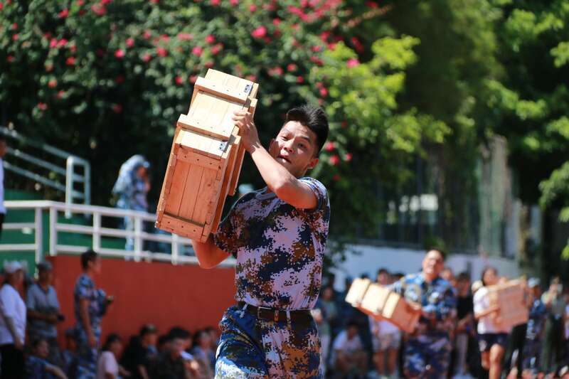 中国青年报客户端讯(中青报·中青网记者 任明超)日前,海南职业技术学院举办了300多名学生参加的第三届军迷文化节国防体育运动会。搭建81式军用帐篷,手榴弹投掷、战术基础动作、“蛇”行跑接力、“弹药箱”搬运接力、翻轮胎等军事科目赛事让职业院校的大学生过了一把军人瘾。