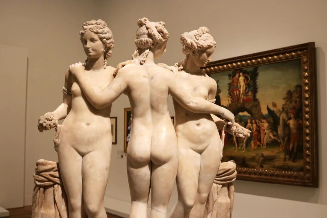 从古希腊罗马时期一直到文艺复兴时期,美惠三女神早已成为西方艺术史上经久不衰的创作题材。从十五世纪起,这一主题成为了艺术家们心目中的高难度挑战:既要完美诠释美惠三女神无与伦比的美貌,又要精确把握比例与人体结构、还要呈现艺术品的叙事性和肢体语言等等