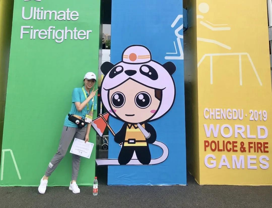 2019年8月,钟杏敏在世警会消防员赛事组承担秩序和语言方面的志愿工作,在与赛事承办方天府消防大队的消防员们沟通的过程中,她更加直观地感受到消防员这个职业的非凡之处。“消防大队承办了极限消防员和消防百米障碍两个项目的比赛,极限消防员这个项目是让参赛的消防员背一个很重的假人出入模拟的火场,他们在真实工作中很可能就面临着这样的情境,我对消防员的敬意也就更真切了一些。”时间已经过去了快两年,但提起这件事,钟杏敏心中的感慨仍然不减,“比赛结束我们和消防员合影,照片还没拍完突然警铃就响了,他们就要立刻出警。我们当时也不知道他们出警要去哪里干什么,只能在他们背后喊平安回来。”