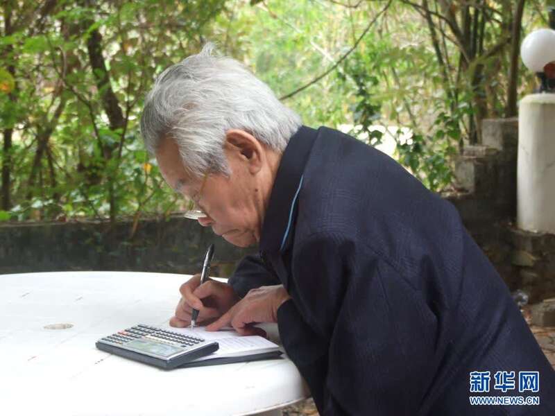 84岁的彭士禄在三亚度假时仍在搞计算(资料照片)。新华社发