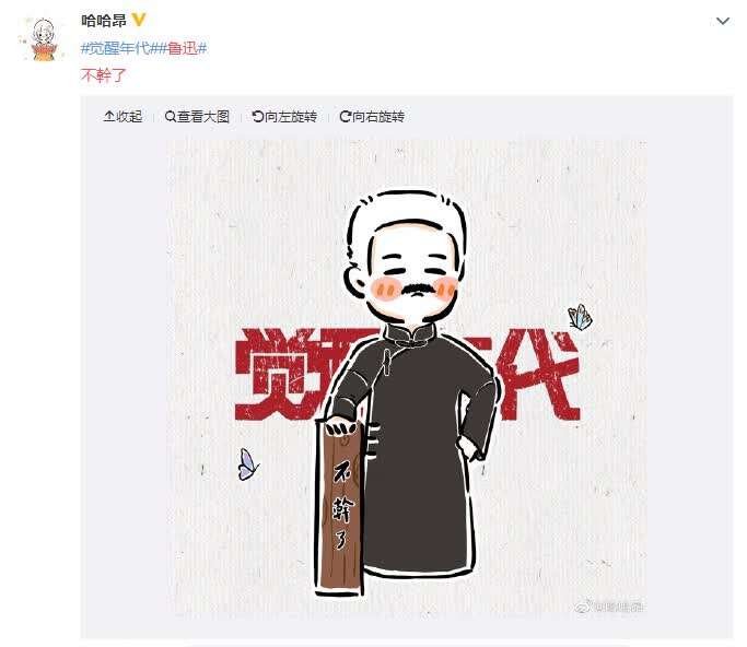 在网上,迟迟等不到剧组回应的消费者,已经自发开始出漫画,定制各类周边产品,从《新青年》背包到鲁迅“不干了”木牌,不一而足。